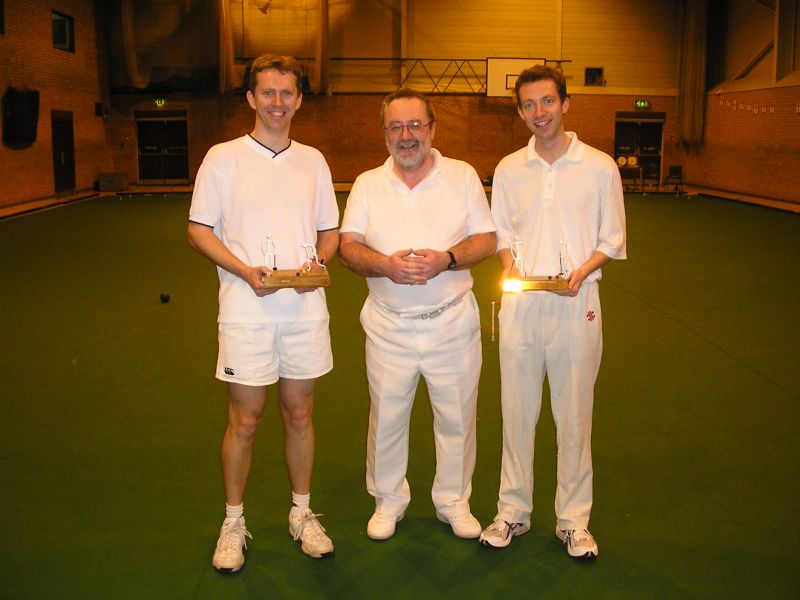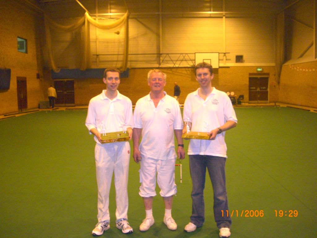 Tony MarksSeven teams competed in the first indoor tournament of the season. With a rather patchy entry some of the teams could fairly be described as hybrid. Thus while Colchester and St Albans were both represented by two pairs there were also composite teams from Downips (Downham Market and Ipswich) and Northwich (Northampton and Norwich). Letchworth looked like a team with a solid foundation but in fact turned out to be Duncan Hector partnered by anybody who wasn't playing for someone else at the time. In fact, Duncan was clearly able to inspire his partners to raise their game (or perhaps he was just shrewd in picking them) to the extent that he won 5 of his 6 games, a total only equalled by St Albans B (Terry Mahoney and newcomer Jon Palin), St Albans being declared the winner on the basis of net points won.