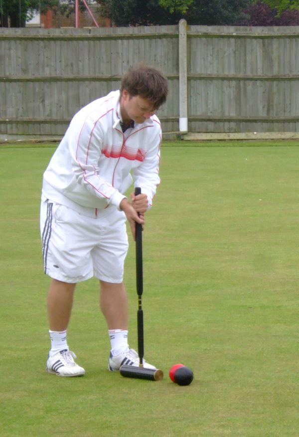 Croquet in the Park: Taking a walk in the recently (Lottery Funded) refurbished Norwich's Eaton Park any visitor would be pleasantly surprised at the level of activity that was being undertaken by members of the public. Junior football, model boating, BMX cycling, pitch & putt, tennis, bowls, cricket, rides on a small gauge railway and next to a children's play area that would have done justice to any army assault course, the tranquillity of three ex-bowling greens with its Edwardian styled pavilion the home of Norwich Croquet Club. In this backdrop the club was staging its annual 'B' level tournament that had attracted a strong entry of visitors with handicaps ranging from 1 - 7. It was immediately made clear that play was not only going to be competitive and of a high standard, this was not going to be a place for the faint-hearted with the three lowest handicaps Paul Miles, David Tester and Dean Bennison setting the mark by seeing off their opponents +19, +26 and +25 respectively. By the end of the first day Dean and David were still holding their own with 4 and 3 wins apiece. However, a dark horse in the name of George Woolhouse almost unnoticed emerged with 4 wins to join the leaders. On the second day in a close fought game Colin Hemming managed to put paid to David Tester's advancement by winning by +3, whilst Dean Bennison in magnificent form saw off his nearest challenger George Woolhouse +18 making him the undisputed leader with 5/5. In the final afternoon game Dean played the previous year's winner Martin Leach and emerged the winner by +20, making him the tournament winner with a 100% record of 6/6 and a reduction in his handicap to ½. |