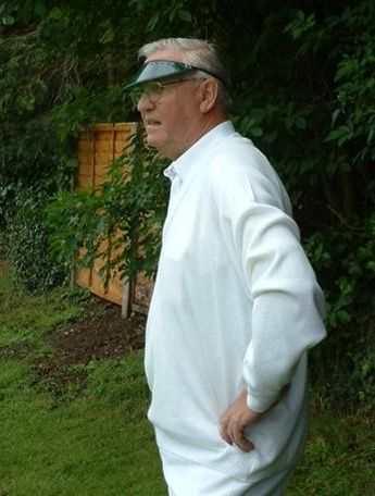 Time limits for the games were two hours plus six Wharrad turns: plenty of time for B-class players to complete their games; first to return to the clubhouse were Terry Mahoney and Ian Storey (both hatless), Terry having prevailed +24 in about an hour and a half. These were closely followed by George Woolhouse (see above), who had made short work of George "Laughing Boy" Winder, who was wearing, believe it or not, a straightforward cloth baseball cap! S-o-o-o last century, George; and your croquet suffered, of course. Games then came in thick and fast, so that by lunch-time everyone was well into his or her second game, apart from the four who had already completed the first two! Remarkable progress by B-level standards.