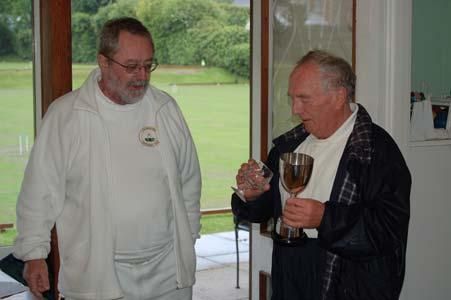 Meanwhile, in the croquet tournament Neil had fallen victim to the steady play of Ken Pickett, but Dean and Terry had both won their first games, setting themselves up for what proved to be an exciting final. This, and everyone else's second games, had started before lunch. No significant rain yet. During lunch, the manager played for everyone's entertainment "Croquet Habits" by Freeny's Barn Dance Band, a record which will be familiar to all subscribers to the Croquet internet newsgroup. For those who don't know it however, this recording was made in the late 1920s or early 1930s and appears in a recently-published compilation of ultra-rare Jazz and Blues records from that period. Not to everyone's taste of course, but all those present seemed to enjoy it, and after the doors were unlocked play continued.