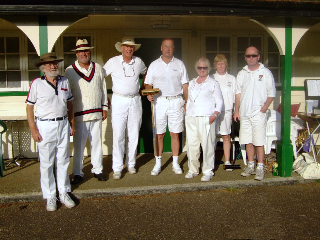 A delightful three days spent at Hunstanton for their Over 50s tournament. 21 entrants – an extra player arrived on the first morning – but ably sorted and managed by Ian Storey. Sunshine against all predictions, although we did experience a half hour of monsoon on Saturday, (witnessed in splendid isolation from the shelter on Lawn 5 by your correspondent as everyone else cowered in the Clubhouse). Excellent food and a friendly, relaxed atmosphere. Umpteen games played, as everybody was so keen to get on to Hunstanton's immaculate sward (very well kept by groundsman Jeff Race who takes a personal interest as his own game improves on an exponential basis). The devious Egyptian points system meant that we never really knew who was going to win until the last game on Sunday. Chris Donovan was in the lead at the close of Day 1, with Terrey Sparks lurking. Terrey surged into pole position on Day 2 with Patricia Duke-Cox and Jonathan Toye close behind. On Sunday afternoon it looked as if Terrey would retain the trophy that he had won in 2006 but the doughty David Tutt had other ideas. After an hour's play the bisques were gone and Terrey had one ball on peg the other on rover, with David on hoops 1 and 2. In a fascinating comeback, following the croquet player's motto of nil desperandum, David crept up and overtook his opponent to win by 3, knock Terrey into second place and present Patricia D-C with another Jane Neville-Rolfe Salver. Jonathan Toye |