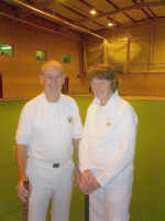Sunday provided a closer contest with the first 3 places depending on the outcome of the final game. Once again, three generations of the Race family from Hunstanton were involved, with 13-year old Timothy partnering his grandmother as their 'B' team. Eventual winners were the Hunstanton 'A' team of Jeff Race and his partner Mary. Letchworth, with a different pairing from Saturday, were second, with Stony Stratford, experiencing the carpet surface for the first time, a creditable third.