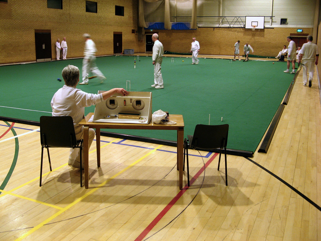 The East Anglian Croquet Federation's indoor golf croquet tournament took place at the Ross Peers Sports Centre in Soham. Fourteen teams from the region competed over two days on the smooth carpet. Competition was serious and fast, the carpet surface proving a challenge for experienced players as well as newcomers, the hoops unyielding even to the most skilful.
