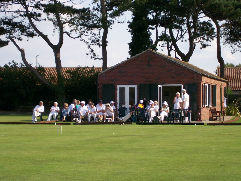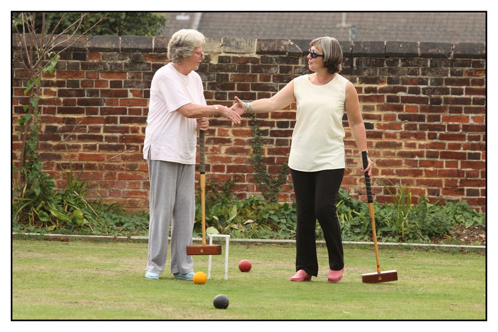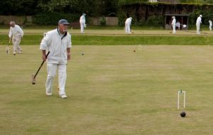 Both teams assembled before 10.00am on Saturday morning that had dawned one of the few beautiful days in late July – 'sunny Hunny' was living up to its reputation. After introductions all round and a welcoming drink, play commenced. The games were mostly very close and were all played in good humour and sportsmanship. The rounds alternated between Doubles and Singles with many going to the deciding 13th hoop. Play finished around 5.00pm and after a brief break, there was an enjoyable fish & chip dinner followed by a quiz and raffle, and an announcement by Hunstanton Chairman Terrey Sparks that Leighton-Linslade had won by 24 games to 21.