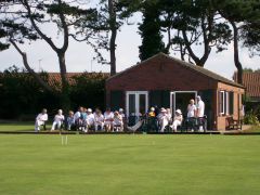 On 25th July ten members journeyed to 'sunny Hunny' on 25th July to play a Friendly match against Hunstanton Croquet Club. The club enjoys the most wonderful facilities, both in terms of their five excellent lawns and clubhouse. The tournament consisted of 30 Singles and 15 Doubles games. To play that number on our two lawns would take two full days' play, however with five lawns there was no problem and it was not even necessary to enforce a time limit.
