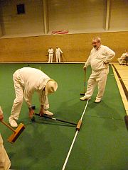Sunday reverted to the long-established conventional Club-based format although two composite teams were included. 8 teams took part, each playing 5 games. Colin made a point of welcoming back Phil Eardley who hadn't played for some time as well as first-timer Jeremy Kitchener, a founding member at Norwich in the early 1980s returning after a long absence. A very warm welcome was also extended to Rob and Susan Fulford. This was Susan's introduction to the carpet and a potentially formidable future partnership soon became apparent. I wonder when Rob last played with bisques!