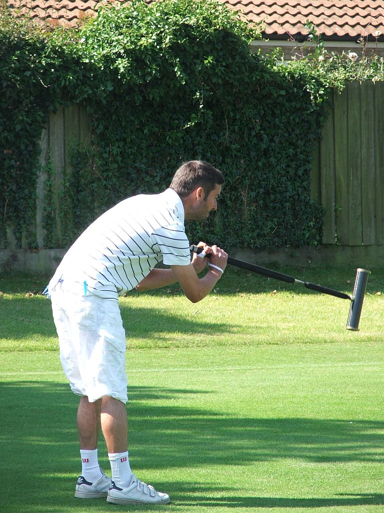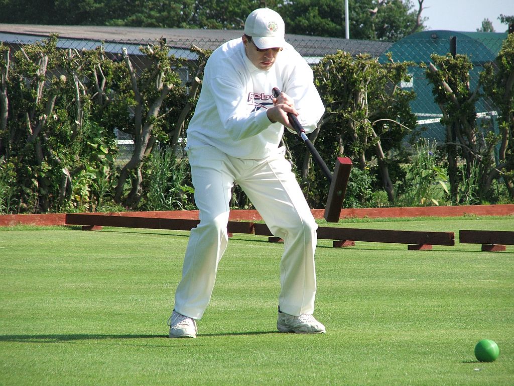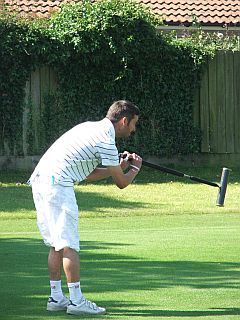 The Hunstanton lawns were in immaculate condition and the weather was sunny if a little chilly, but the promised rain kept away. The first three rounds took from 10.00am until lunch and it soon became apparent that the team on excellent form was Hertfordshire, closely matched by the EACF and Suffolk teams. In the afternoon session these three teams consolidated their positions and finished the block by winning four games for Hertfordshire, with EACF and Suffolk taking three. The other three teams certainly didn't give away points easily – a large percentage of the games went to the 13th hoop and could have gone either way. Essex were fourth, pipping Bedfordshire on game wins, and Norfolk were sixth. All members gave their utmost for their county.