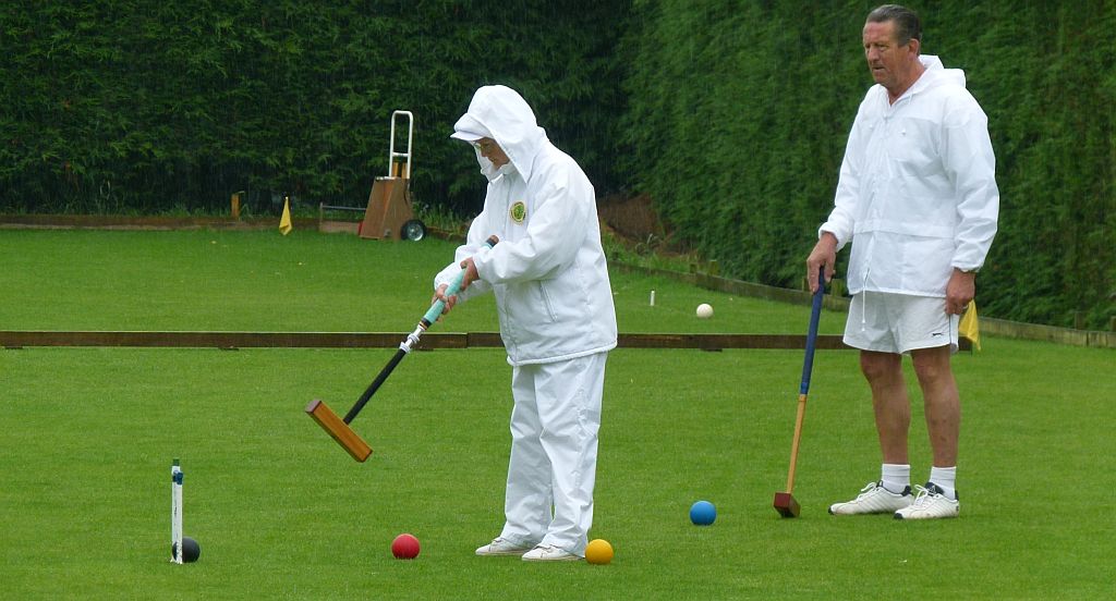 Despite the heavy lawns the games progressed well and play in both section was very competitive. However, mid morning a fine drizzle started, which although unpleasant did not deter play. After a short break for lunch the players returned to the lawns, unfortunately to be met by the drizzle turning into downpour. After completing one more game it was decided by the Manager Terrey Sparks that play would be temporary suspended to see if things would improve. Unfortunately, this was not to be the case, and with the lawns having taken so much water over the previous twelve hours they flooded and became unplayable, so it was decided to abandon the tournament.