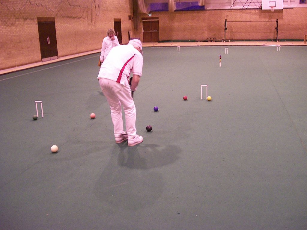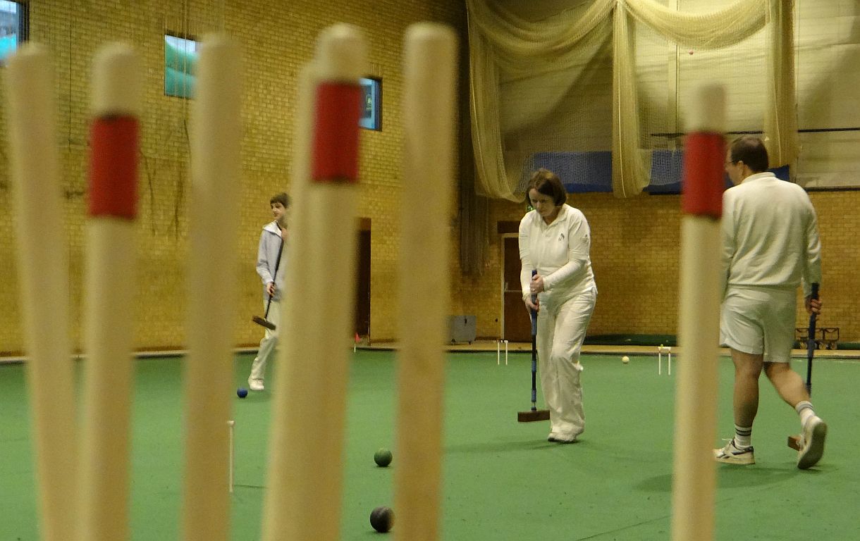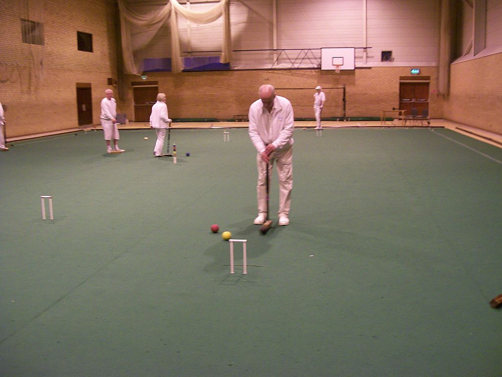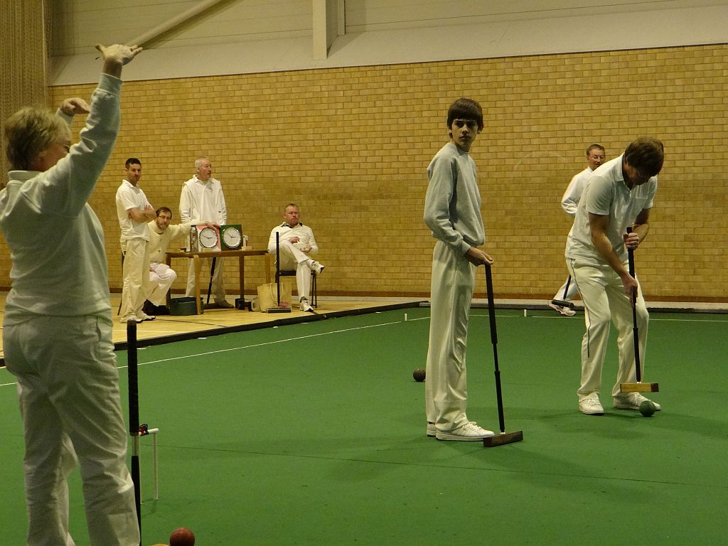 Association CroquetDespite a mix up over the Saturday hall booking and the clocks and trophies being located in the wrong place, after some last minute delicate footwork the indoor programme re-commenced on the Sunday with a full complement of 8 teams.