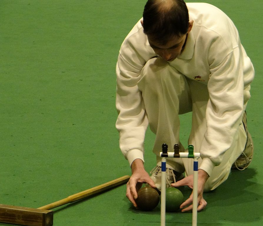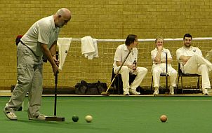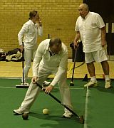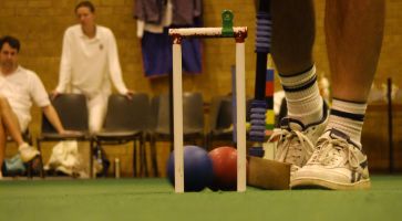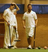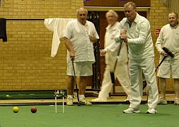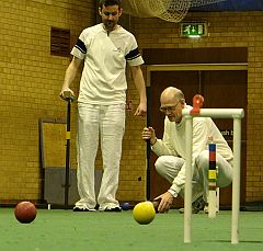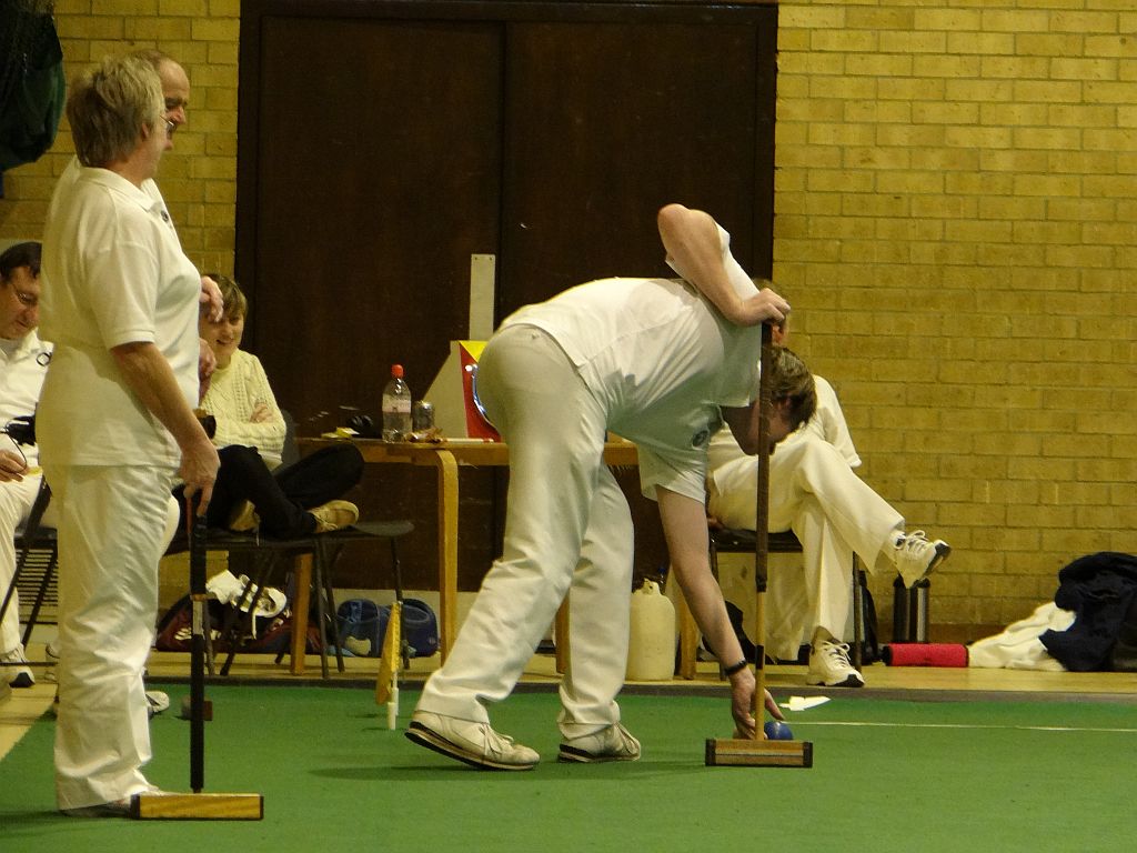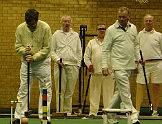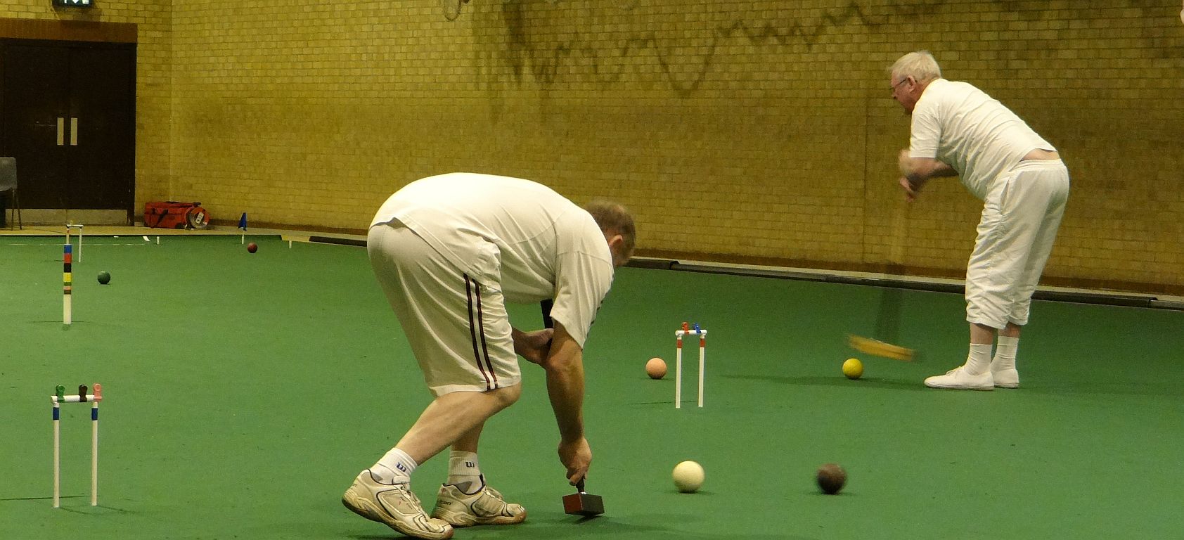 Association CroquetDespite a mix up over the Saturday hall booking and the clocks and trophies being located in the wrong place, after some last minute delicate footwork the indoor programme re-commenced on the Sunday with a full complement of 8 teams.