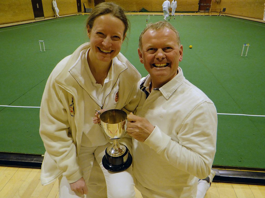 CroquetRobert and Susan Fulford won the opening day of the winter indoor season at Soham. Eight teams met under the interesting lighting at Soham sports centre. This was an experienced field with ten of the 16 players playing off scratch or below. Three teams were required to do 3 mandatory peels with reduced time.... not easy, especially for James Hopgood, his first time at Soham.