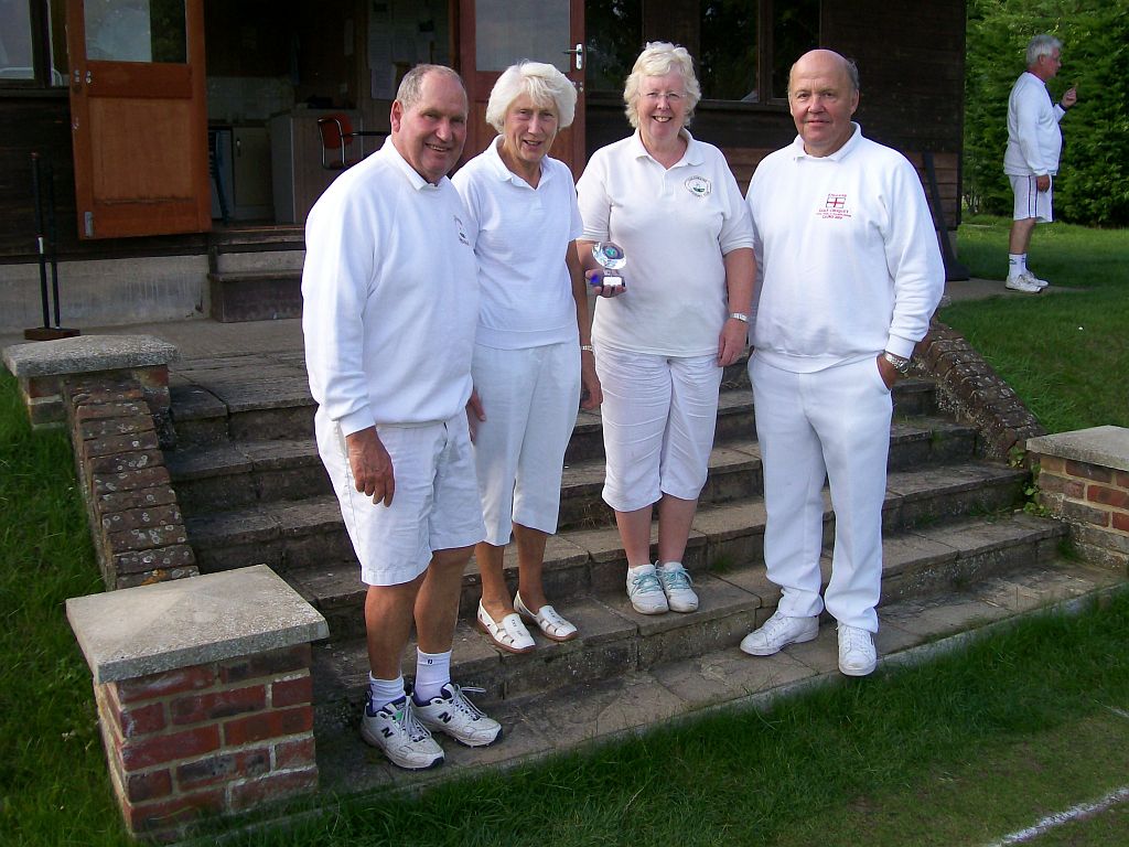 After Round 1: 2-2, all four games being scored 7-3; Nick and Jason winning the battle of the one handicaps for Watford and the two ladies Ann and Jane winning for Colchester.