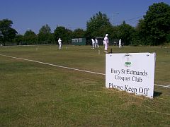 Entries received this year totalled 12 from 5 clubs, and despite one no-show due to a misunderstanding, Irene Davies who had travelled with the Leighton Linslade contingent and fortunately was in possession of her mallet undertook to fill the this vacancy. The format consisted of two blocks of 6 who played each other, with the winners of each block proceeding to a final play-off to determine the overall winner.