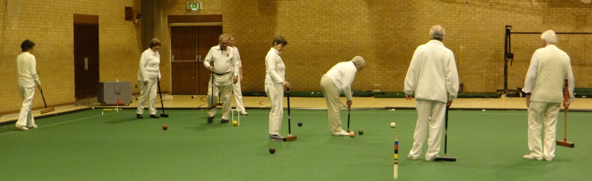 Indoor Association CroquetA full entry of 8 doubles turned out for the final weekend of indoor play on the carpet in Soham for the Belgian Cup, although the silverware, still being in the hands of a previous winner, was only there in spirit. There was a large minority of visiting players of relatively low handicaps who tend to turn up by invitation on a yearly basis. This meant some keen fought play although it was noticeable that despite being required to complete 10 mandatory peels overall in total per round, only 3 games went to time.