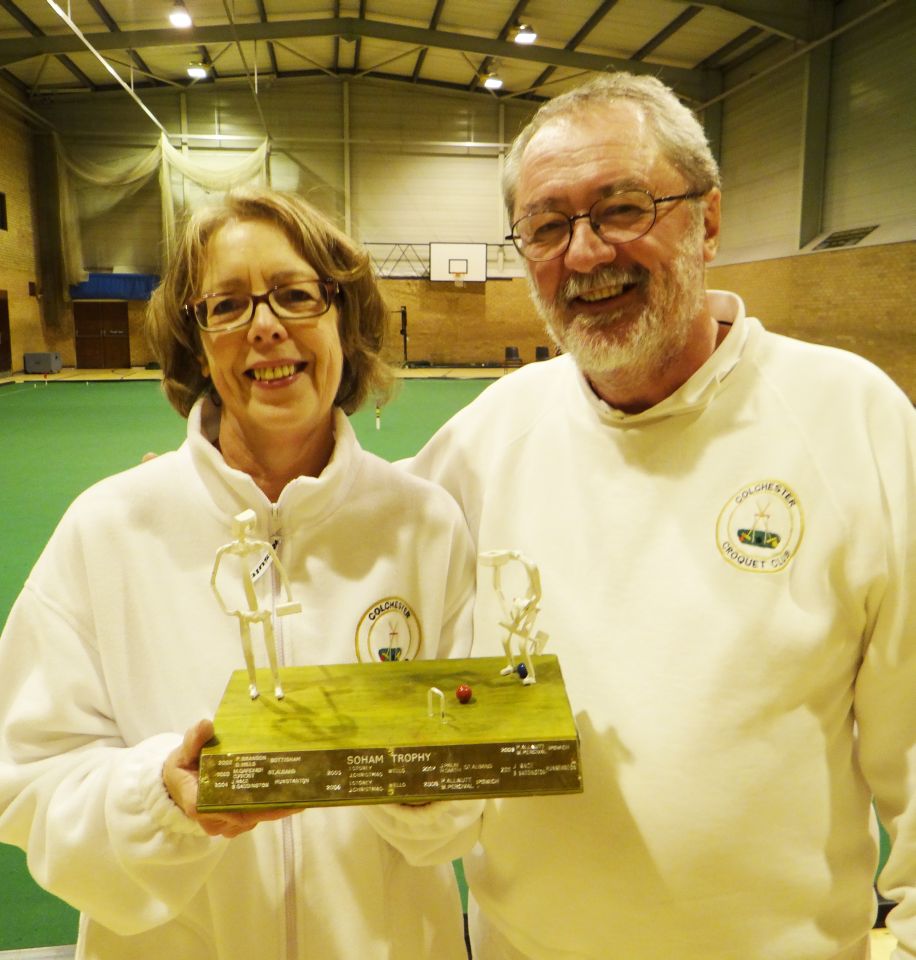 As expected play was competitive and as the day progressed it became clear that the winner would be one of four sides: Colchester 1 & 2, Bygrave 1 and St Albans, although the Colchester 1 side comprising Rob & Susan Fulford would take some stopping. As predicted, this proved the case as the winners would be decided in the final round between Colchester 1 on 4 wins and the Bygrave pairing of Duncan Hector and Gabrielle Higgins on 3½ wins. However Bygrave did not perform as expected, losing by 4 hoops to Colchester 1 who finished the day undefeated with 5 wins.
