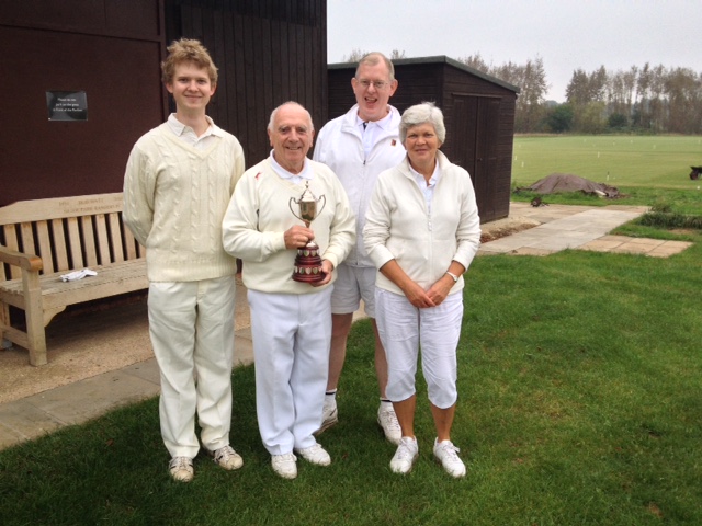 The teams this year representing the three regions were Colchester (South) (Essex/Suffolk), Peterborough (Norfolk/Cambs) and St. Albans (Beds/Herts). In the morning comprising doubles, Peterborough made a strong start winning both their games, closely followed by St. Albans with one win. In the afternoon fortunes declined for Peterborough who only managed to win one game, leaving the gate open for St. Albans to emerge from their morning stupor to win all their four remaining games and again run out the Eastern Region League Champions.