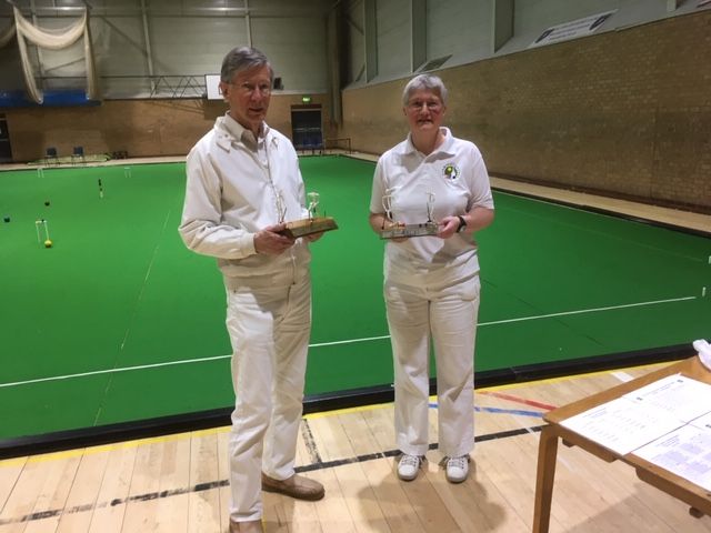 The day was played as a team event and won by Norfolk (Jeff Race and Sarah Barley). Each match consisted of one doubles and two singles where the low bisquer played their opposite number, and likewise the high bisquer. Jeff and Sarah were also the top low and high bisque performers, whilst the best doubles team were 'Two is Three' (Cliff Jones and Terrey Sparks). The wining team received the Soham Trophy from George Collin.