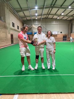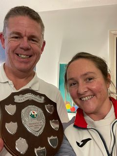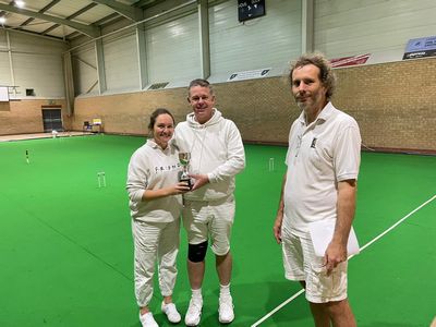 The Lawrence Trophy on Sunday also had a thrilling climax as the final game saw the two unbeaten teams Alison and David Maugham face off against Nick Steiner and Paul Hetherington. In the ends the Maughams triumphed +7, relegating their opponents to third place owing to one win being on time. The day also saw an eight opponent No-one* which was a timed race to get balls around in under 7.5 minutes, in order to allow all teams 5 rounds. Paul Hetherington also partnered David Haslam on the day because of an odd number of entrants, leading to a first game playing against himself and nine games in the day.