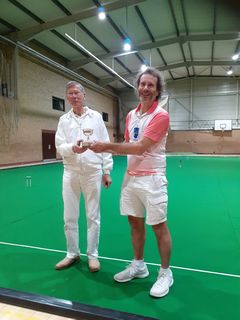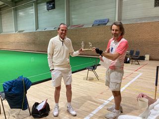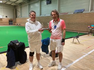 To say Dunham (Duncan Hector and Peter Ross) carried all before them would be an understatement as they won all three games by a margin of 10 or more, and indeed the other three teams all ended up with a negative points score. Fittingly the runners-up 'Old Col' (Paul Hetherington and David Haslam) came closest to Dunham only losing by ten. Whilst winless, the 'Nene' team of Nick Steiner and Terrey Sparks played perhaps the two most exciting games, losing to Norfolk by one on time with literally the last stroke of the game and then losing by one to Old Col, as after time with 'Nene' peg and peg first David Haslam made three hoops, then his partner rover and peg before finally David was able to peg out ahead of Nick.