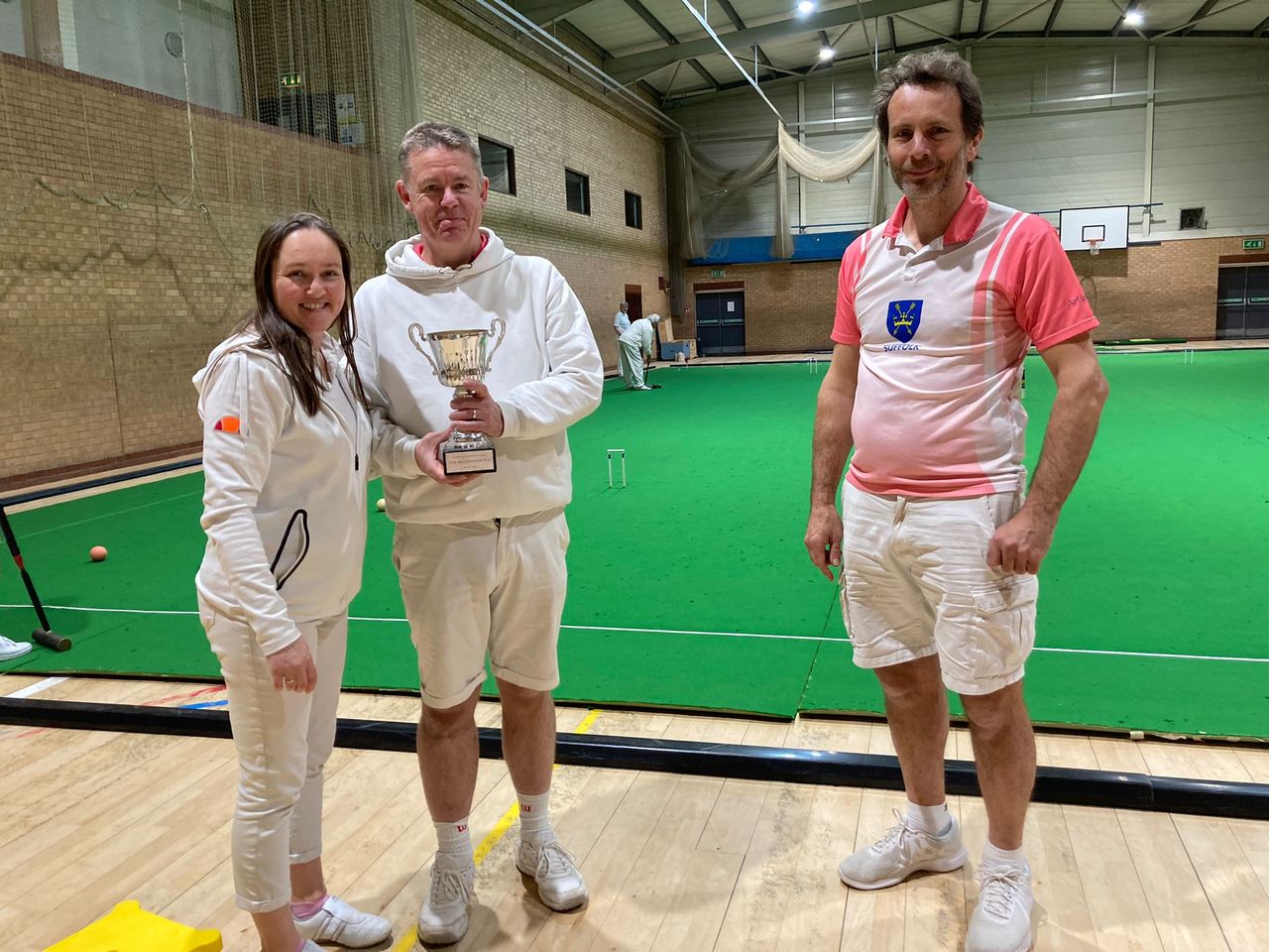 With just four counties competing this year each team played the others once at doubles, and then the first and second strings of each team played singles against their opposite number. Essex (David and Alison Maugham) ran out worthy champions with just one game dropped from nine, as Adrian Kirby of runners-up and defending champions Cambridgeshire (Adrian Kirby and Paul Hetherington) took the singles against David, after the time penalty left David losing by three reduced to attempting to make his final hoops with single ball strokes.