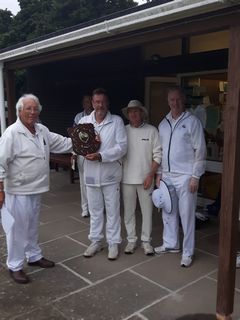 This year the tournament was hosted at the Colchester Club on Saturday 18th June and attracted a full entry of all 6 counties within the Eastern Federation. Again the 3-player team format was used as the hosting club only had 4 lawns. However, the lawns were dry and very fast and despite the hoops being set at 1/16" the fast lawns presented difficulty in running, which meant games were taking more time than was expected and play for the day did not finish until dusk was settling in for the evening. Although the weather forecast was for rain later in the day, none appeared until very near until the end of the day, and this was only light showers which did not cause any disruption to play.