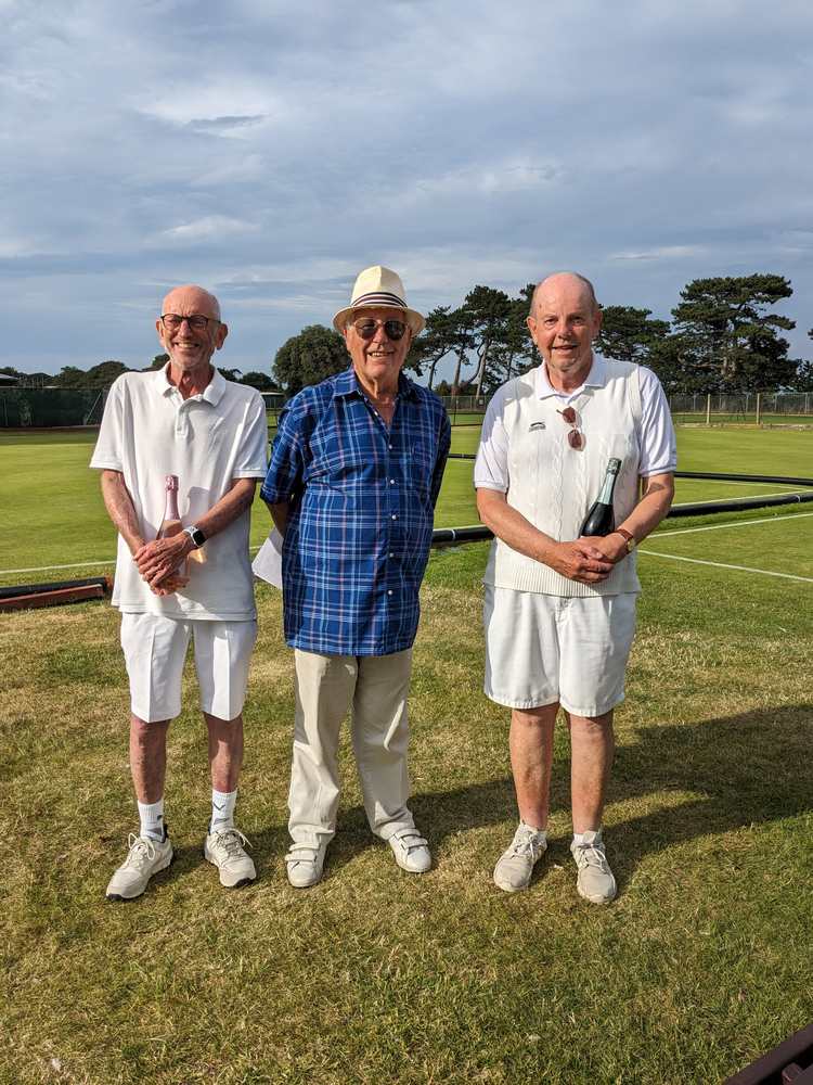 In the handicap section, using the recently introduced Advantage rules, play continued at a slower rate as the players got used to the plus and minus positions of the game, but overall they coped quite well. Using the Cross Block format, in Block ‘A’ local member David Boxell was undefeated, winning all of his 5 games, whilst in Block ‘B’ things were not so clear cut with Richard Keighley of Wrest Park and Bill Ironside of Leighton Linslade being on 3 wins each. Based on net hoops Richard was declared the winner of the block by 1 hoop. In the following final tie between Richard and David, despite being a very close game, Richard always held the edge with David nearly turning it around. However, after a very long day in the heat tiredness came into play and Richard ran out the overall group winner 7–5.